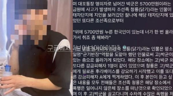 천마는 “홍 씨 소개로 A씨가 대포통장 명의자로 캄보디아로 넘어간 뒤 5700만 원 금원(돈)에 사고(인출)가 발생해 폭행과 감금이 이뤄졌다”고 밝혔다.