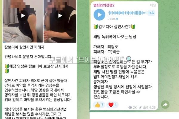 이 영상은 수사기관이 아닌 한 텔레그램 방을 통해 처음 공개됐다. '천마'라는 운영자가 관리하는 해당 채널에는 캄보디아 등 동남아에서 한국인 대상 강력 범죄를 저지른 이들의 사진, 주거지 등 신상 정보가 올라와 있다.