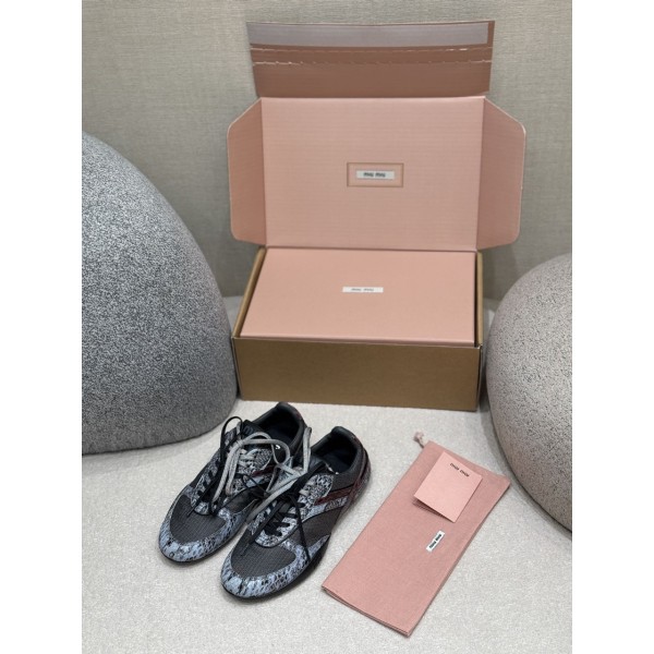 미우미우 김나지움 패브릭 가죽 스니커즈 딥그레이아스트랄블루 5E428E 3ZL4 F04UI 35~40 #폭스샵