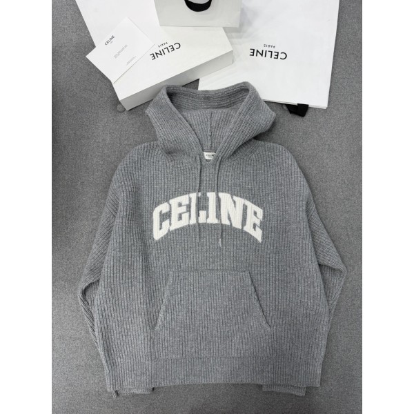 셀린느 CELINE 로고 자수 버진 울 후드 티셔츠 XS S M L