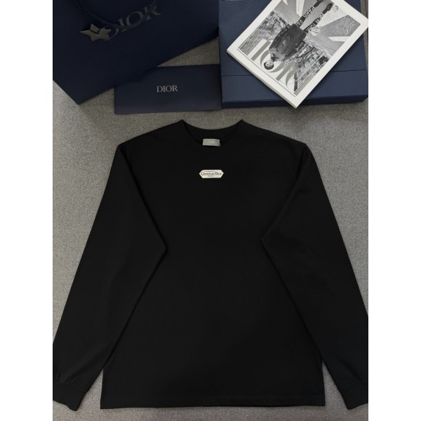 디올 Christian Dior Paris 라벨 롱 슬리브 티셔츠, 캐주얼 핏 블랙 코튼 저지 상품번호: 543J609A0847_C900 S M L XL