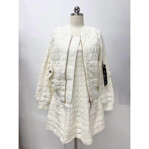 • 샤넬 25FW 25B 집업 블루종 자켓 봄버 항공 점퍼 재킷 자켓 코튼 실크 화이트 P80134 36 38 40 #타지아