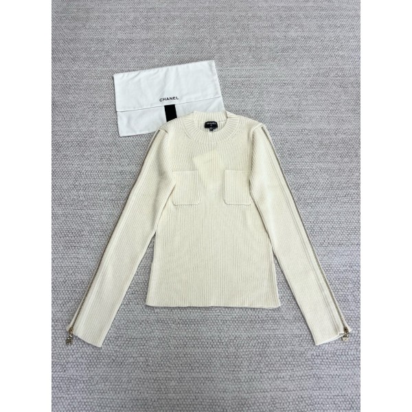 • 샤넬 24FW 투포켓 지퍼 스웨터 화이트 P78423 36 38 40 #타지아