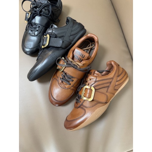 • 미우미우 가죽 스니커즈 버클 코냑, 블랙 5E549E_537_F0046_F_A005 35~40